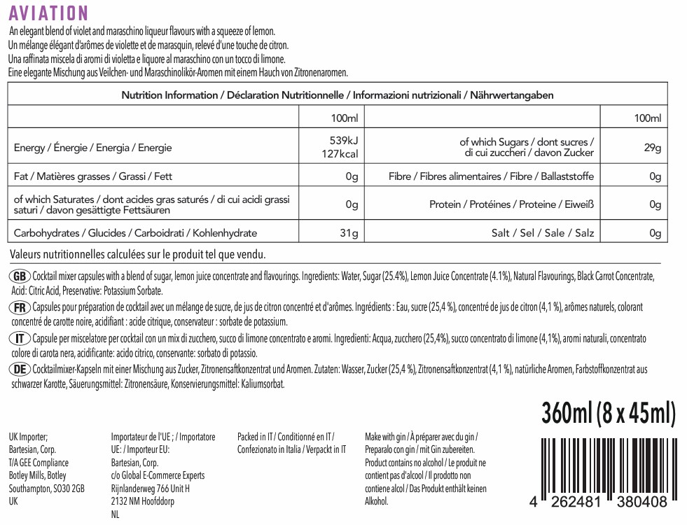 Alcohol Volume: Mocktail = 0 oz., Light = 1.4 oz., Regular = 2 oz., Strong = 3.4 oz.