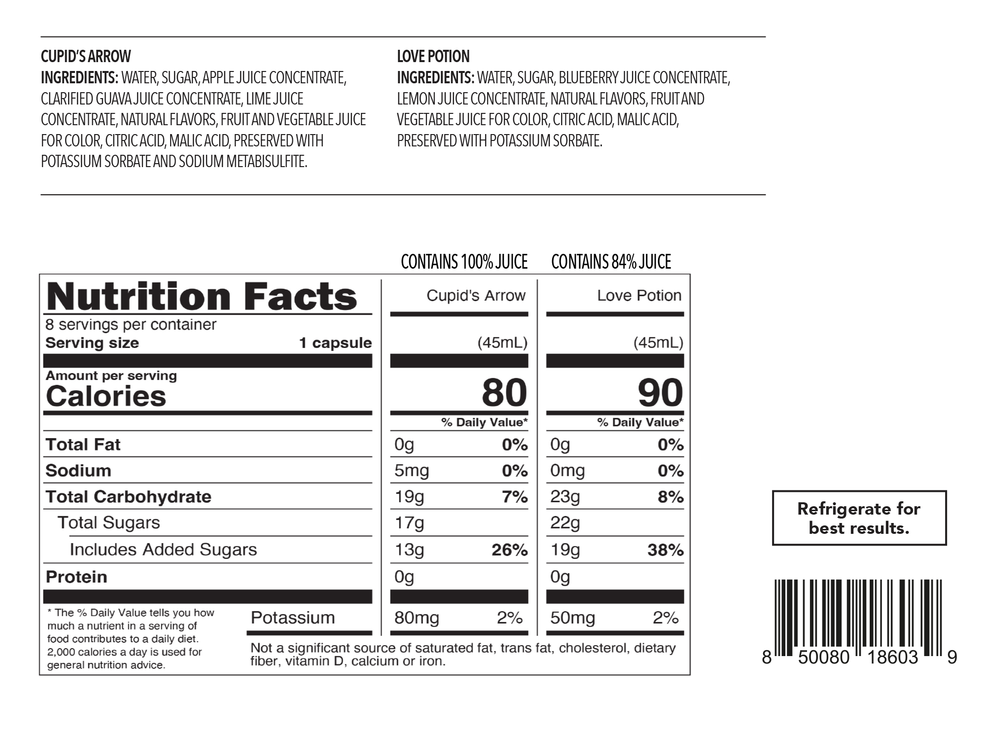 - Cupid's Arrow: the sweet, fruity flavors of strawberry, guava and lime will make your heart skip a beat.